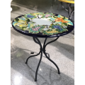 それぞれが全てハンドペイントのイタリア製陶器ガーデンテーブルセットになります。絵柄の中に作家のサインが隠れており、遊び心を感じられる作品になっております。